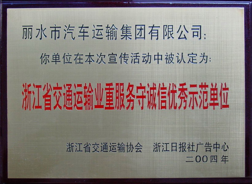 2004年浙江省交通運輸業(yè)重服務(wù)守誠信優(yōu)秀示范單位
