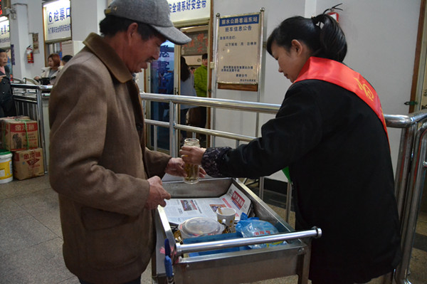 1月27日凌晨,一場(chǎng)不期而至的冷空氣光顧山城麗水,氣溫明顯下降。一大早,東站“流動(dòng)之家”服務(wù)班的工作人員就準(zhǔn)備好熱氣騰騰的茶水,穿梭于候車(chē)室免費(fèi)為旅客送上,井然有序的候車(chē)室里,彌漫著濃濃的暖意。